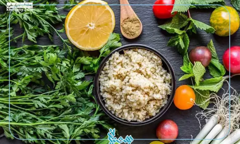 - غلات، ترجیحا غلات کامل مانند کینوا، جو دو سر، برنج قهوه ای